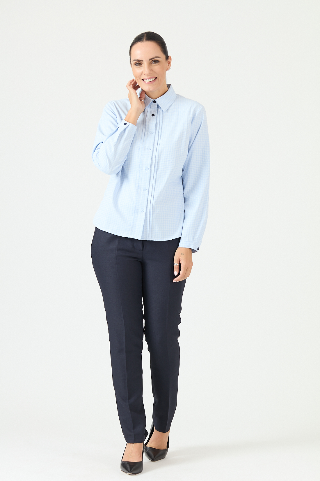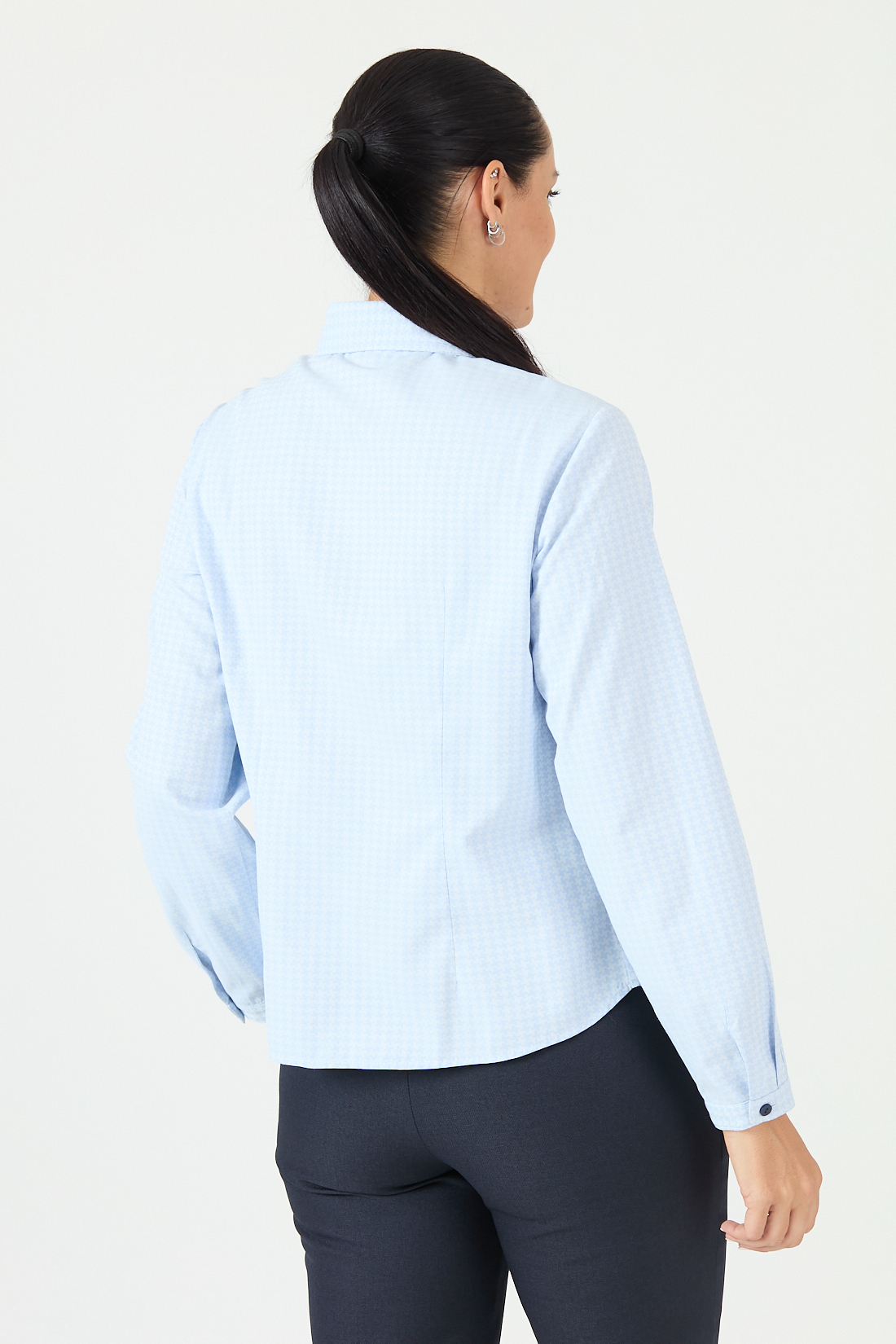 Blusa camisera manga larga, con detalle de algunos botones en contraste.