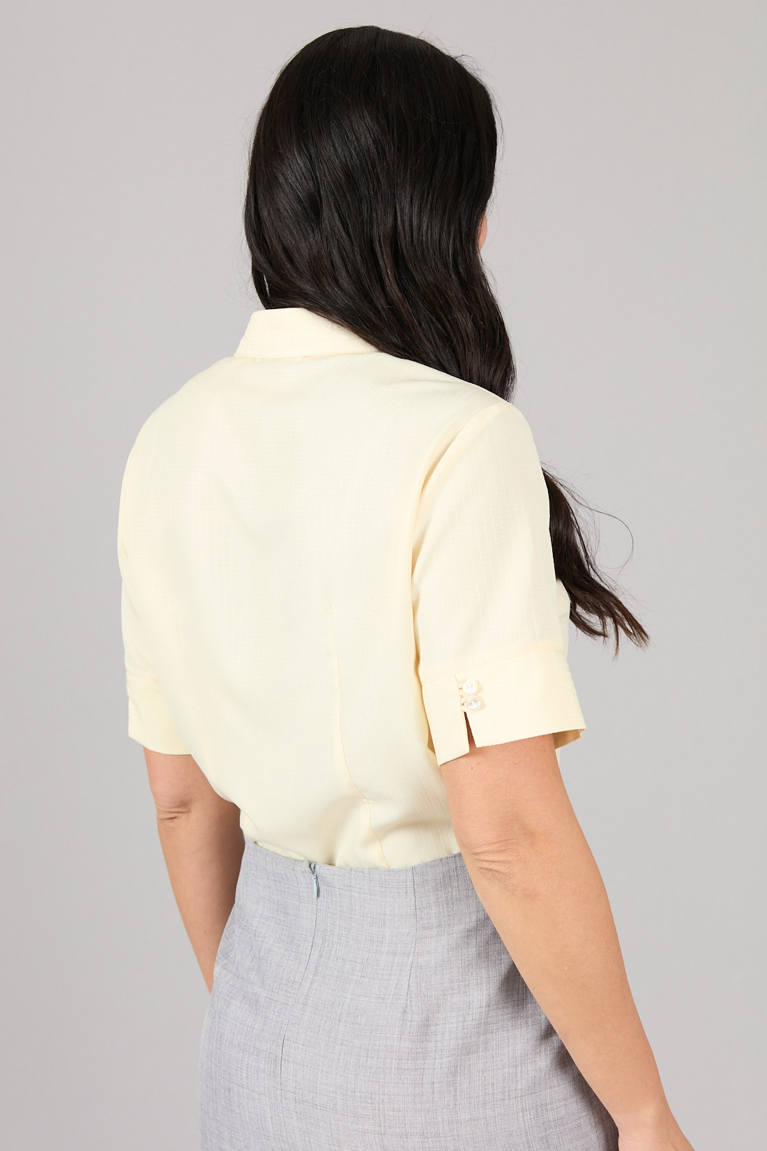 Blusa camisera clásica con tapetas de bolsillos falsos.