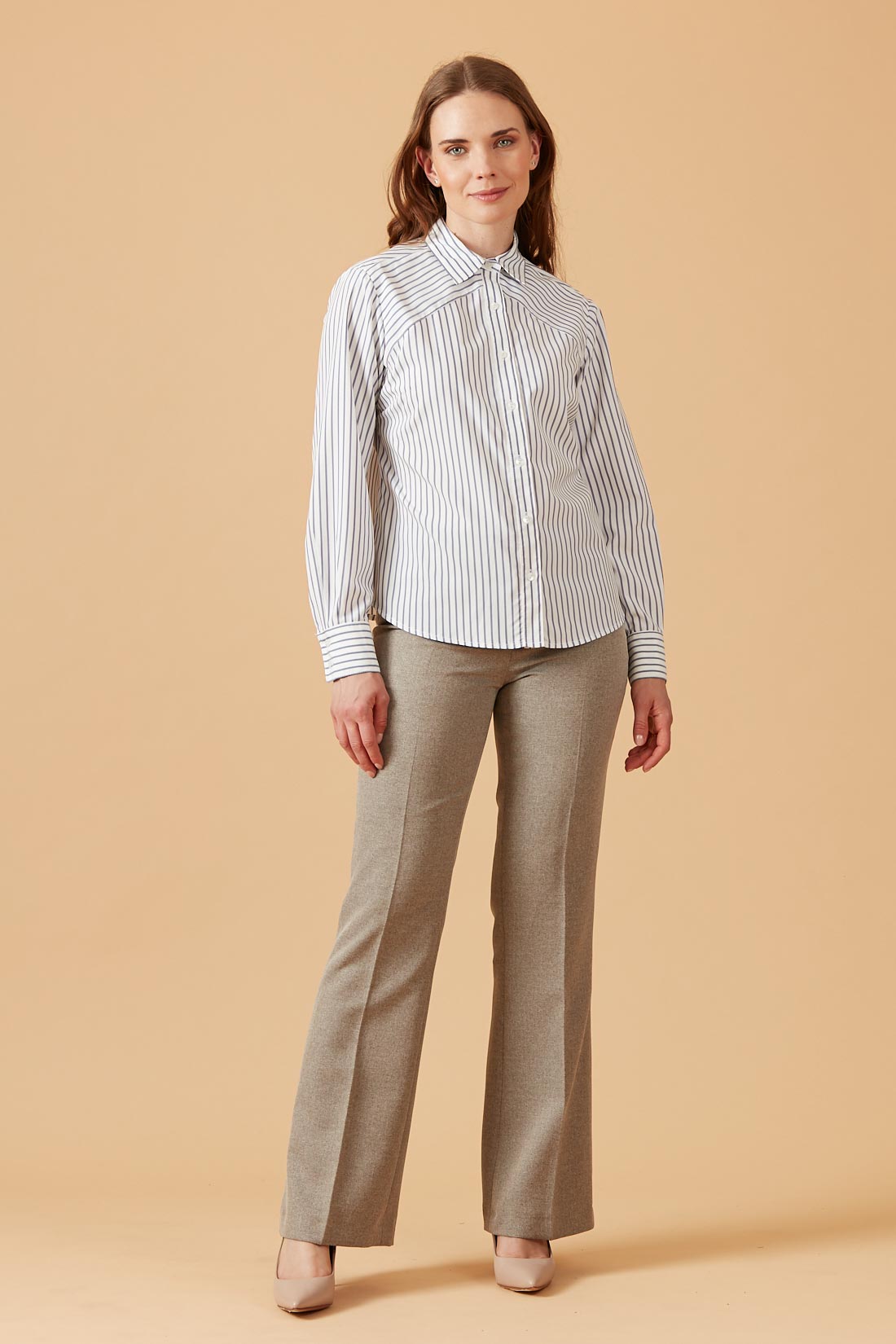 Blusa camisera con canesú diagonal con líneas al sesgo.