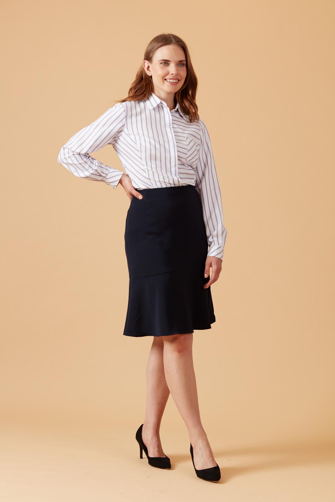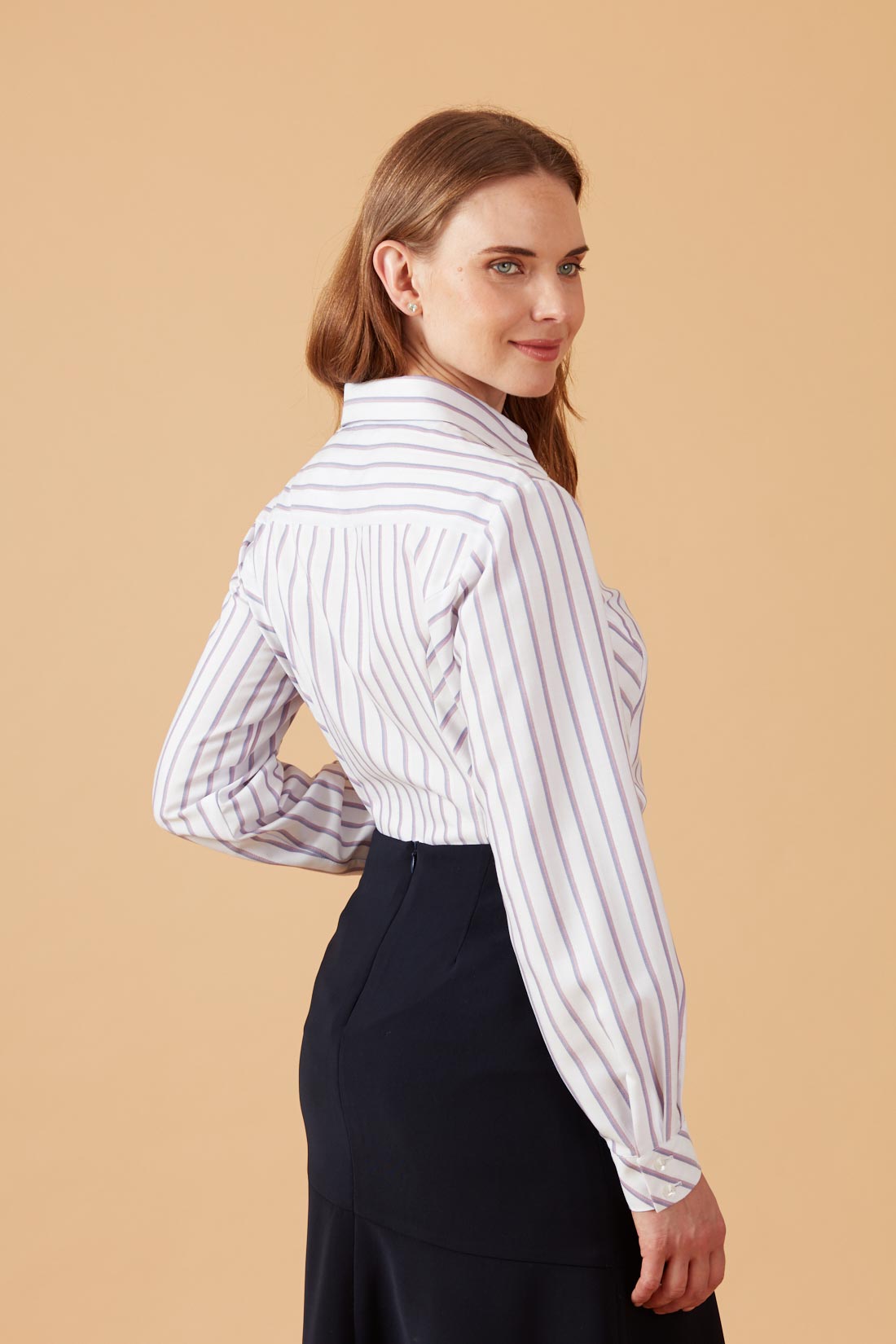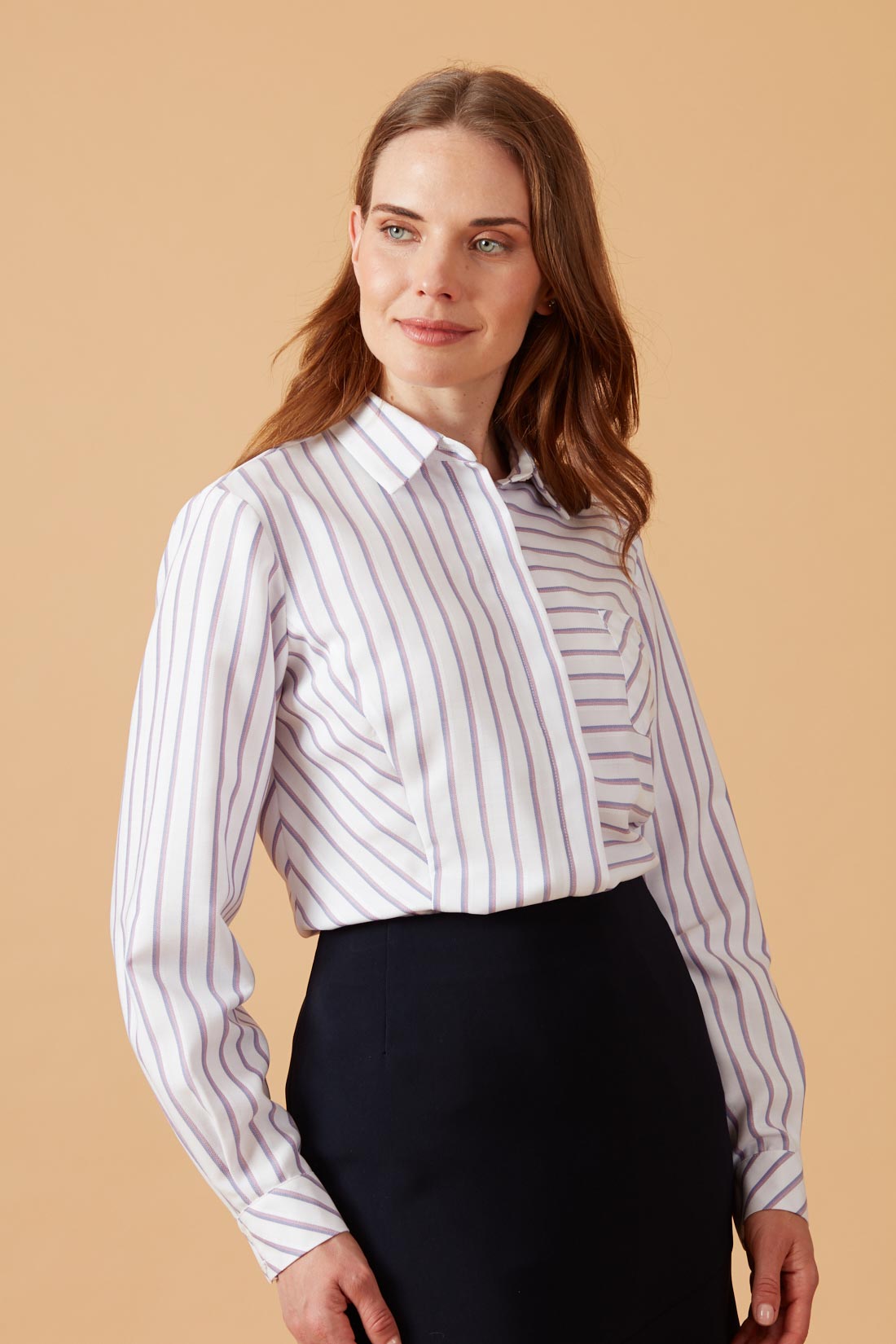 Blusa camisera con tela listada al sesgo.
