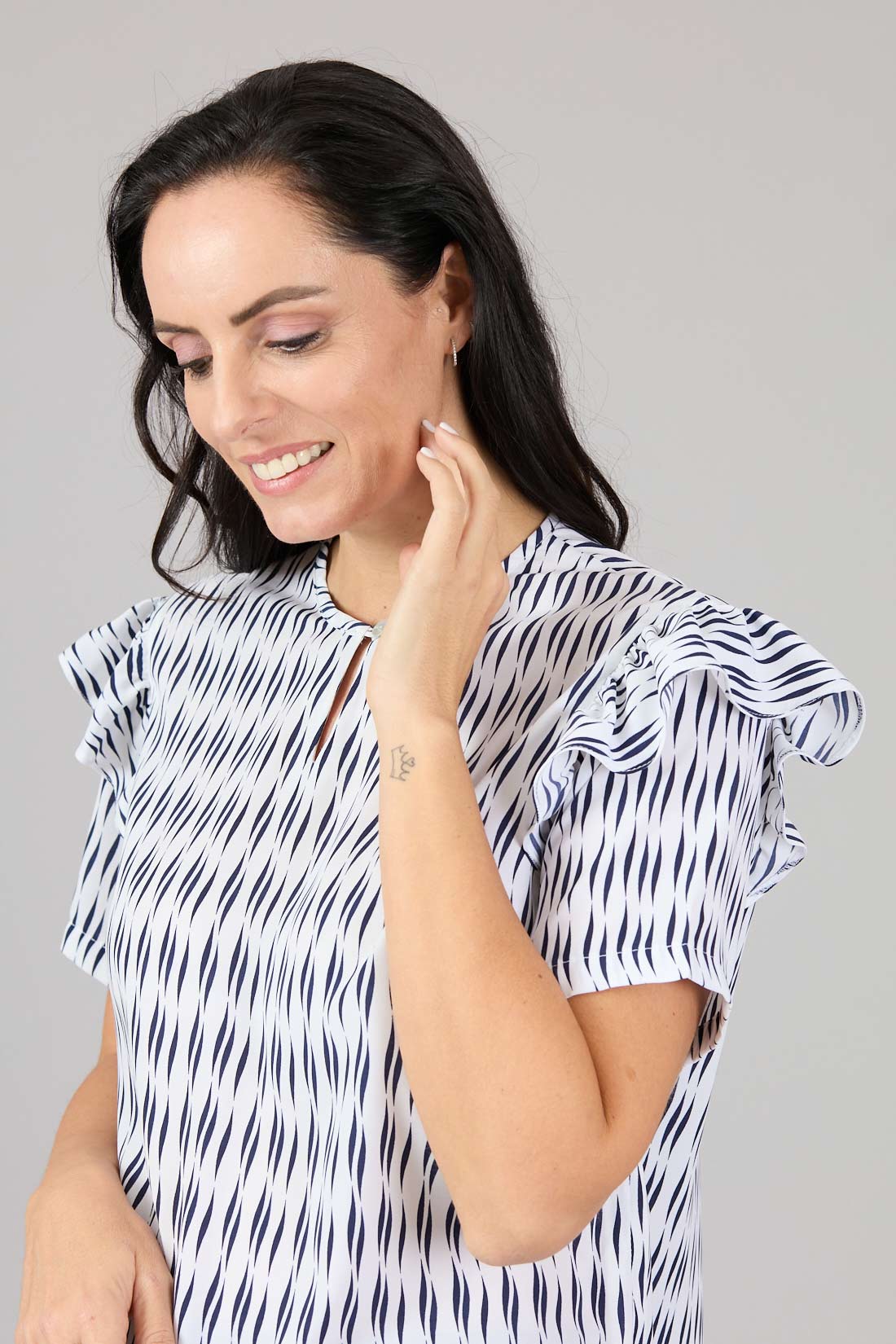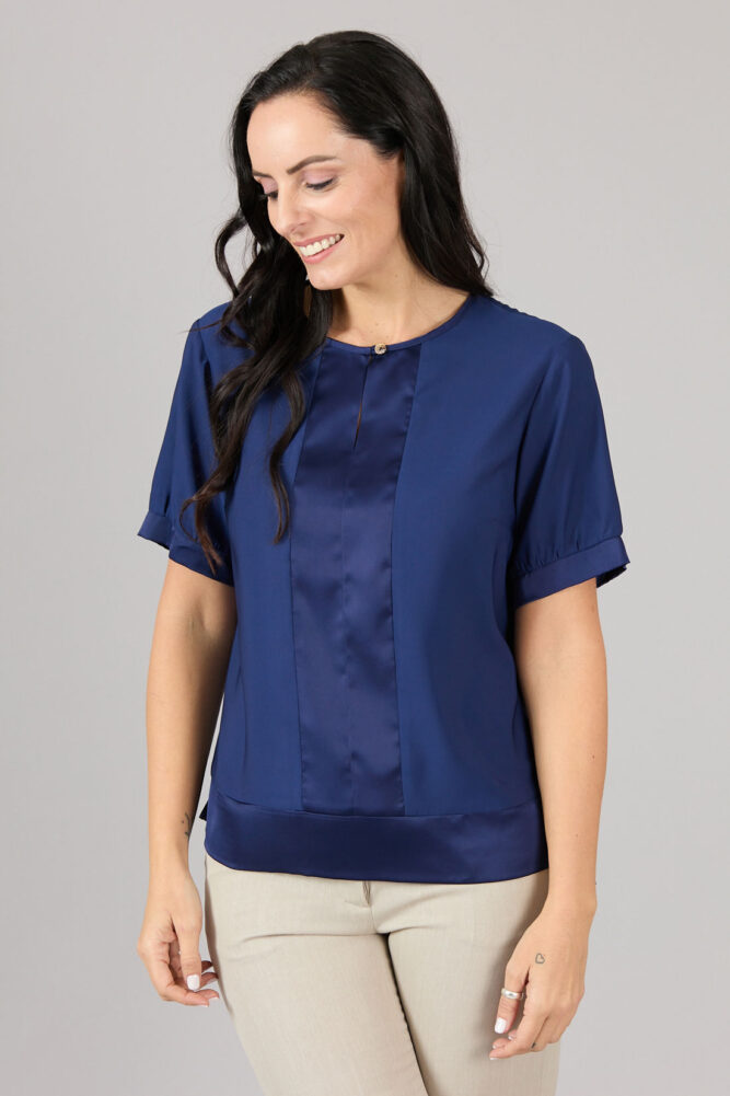 Blusón escote redondo con abertura delantera.