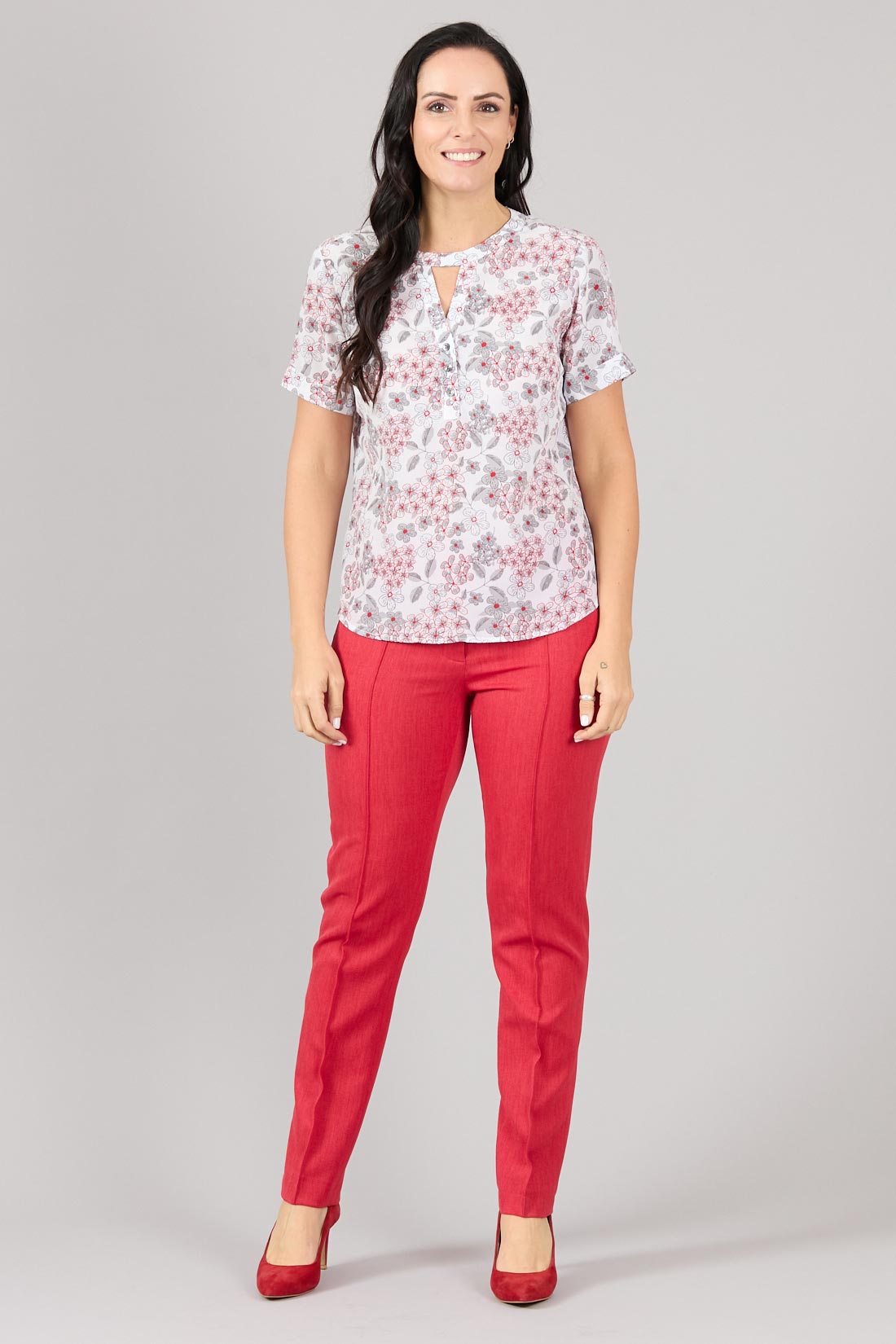Blusón cerrado con escote redondo y sacado en V con botones en pata.
