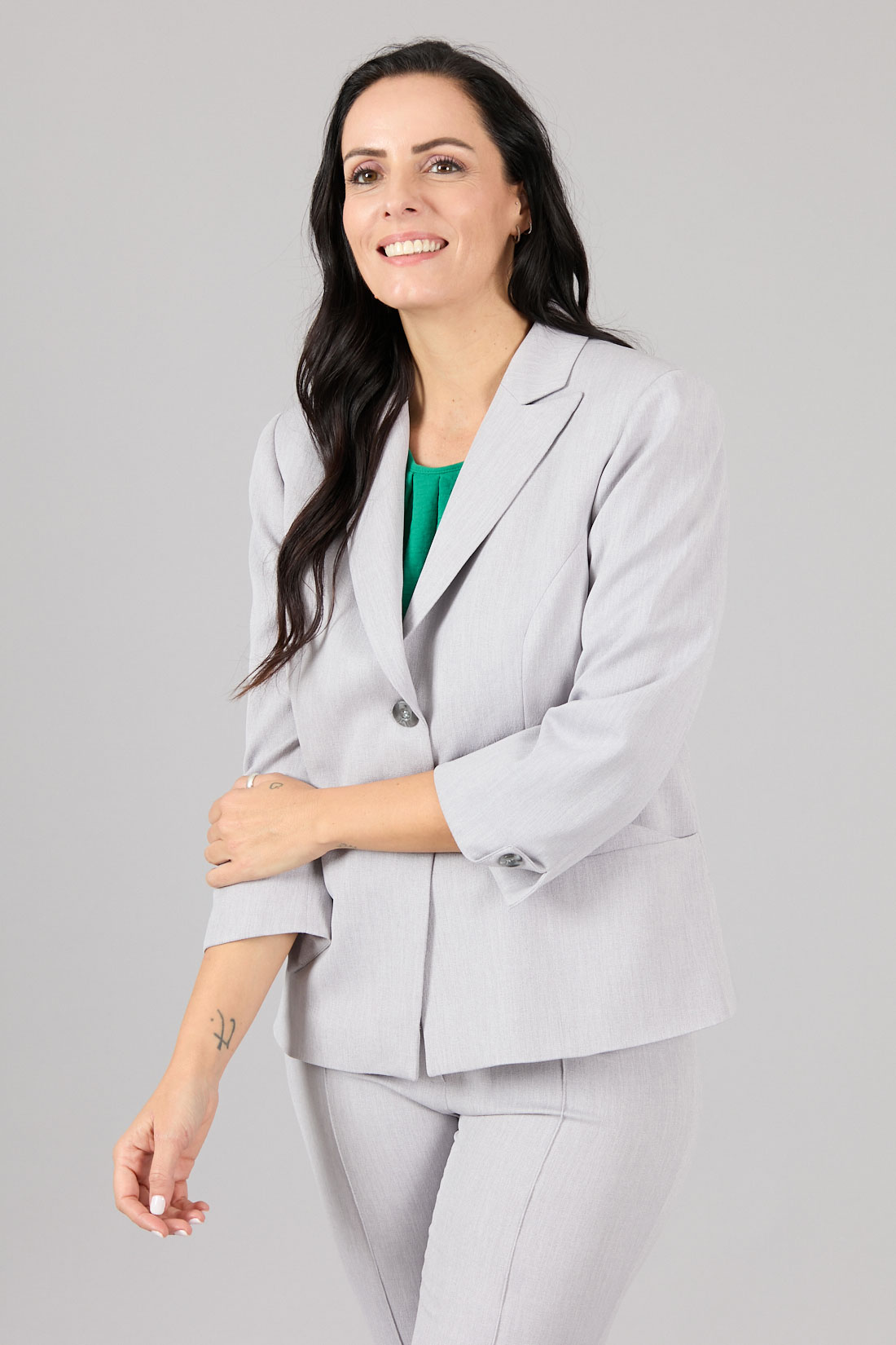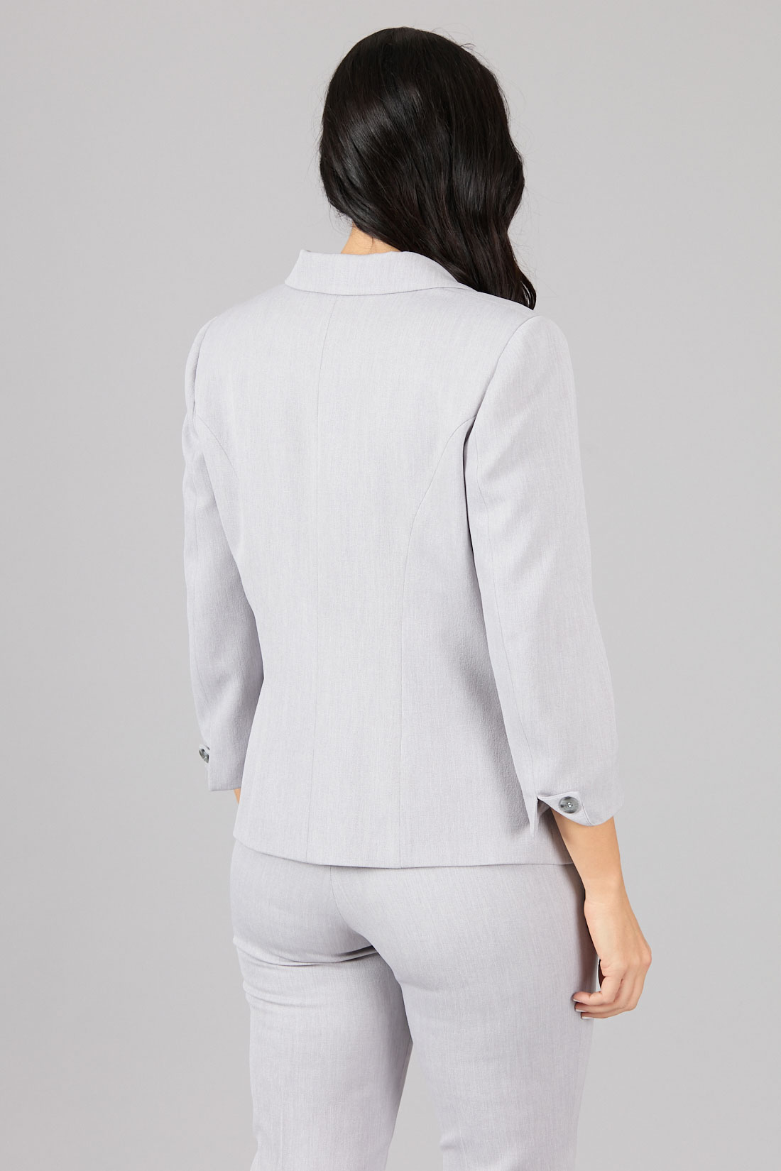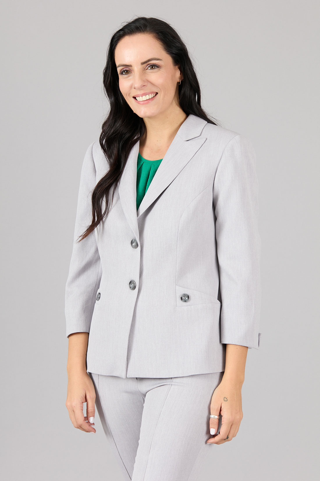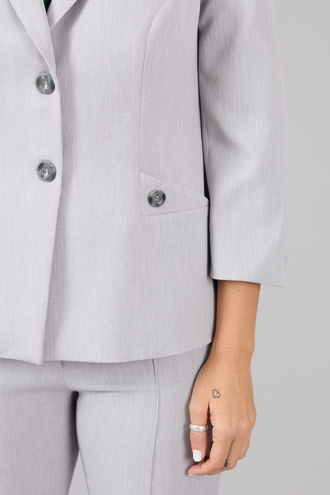 Chaqueta corte tradicional, bolsillos con botones decorativos.