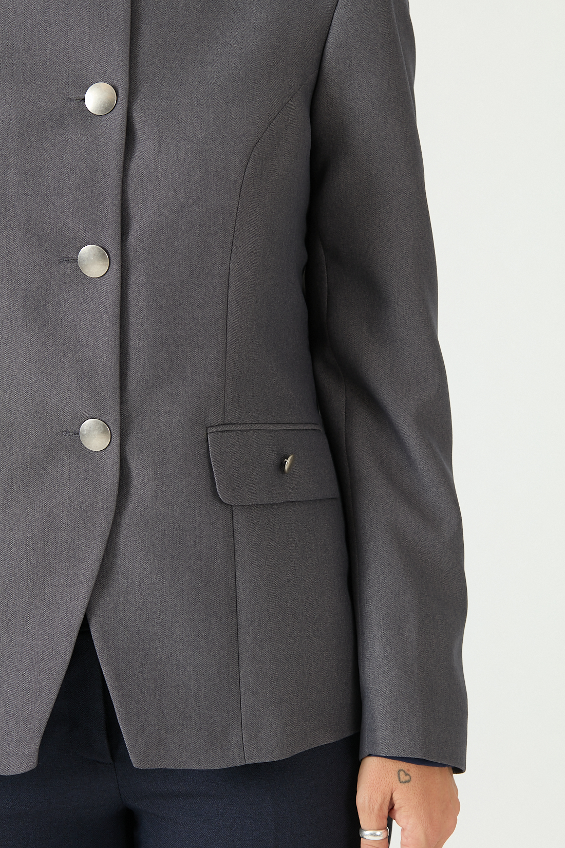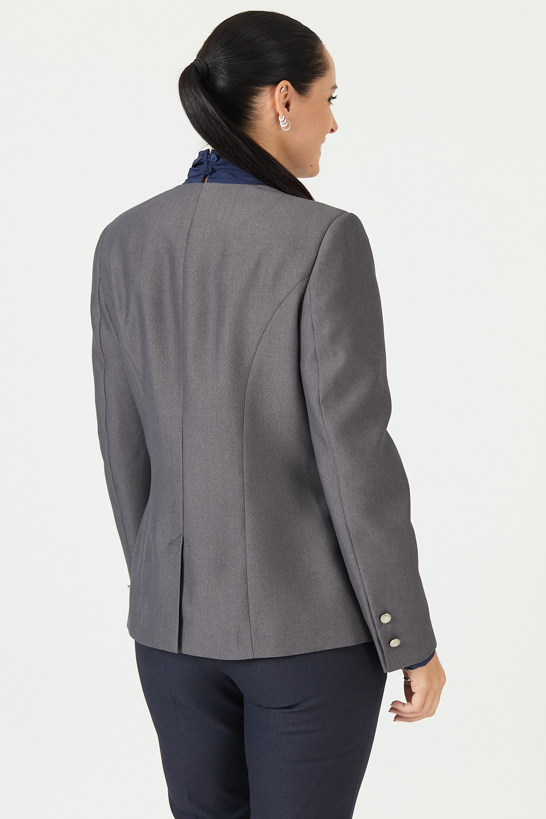 Chaqueta estilo chanel, con abertura A en ruedo.