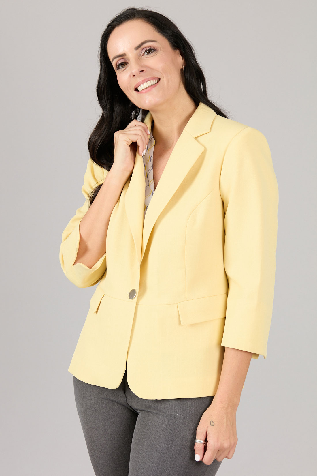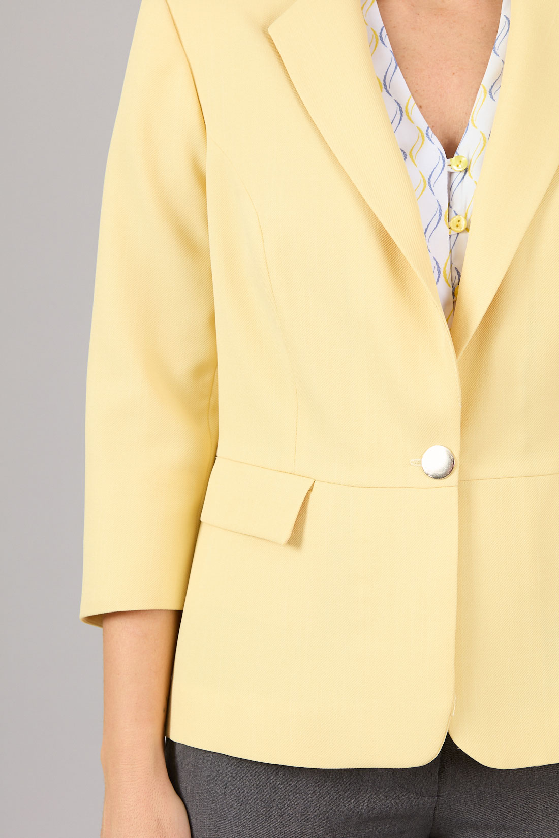 Chaqueta tradicional con corte en cintura y bolsillos con tapetas.