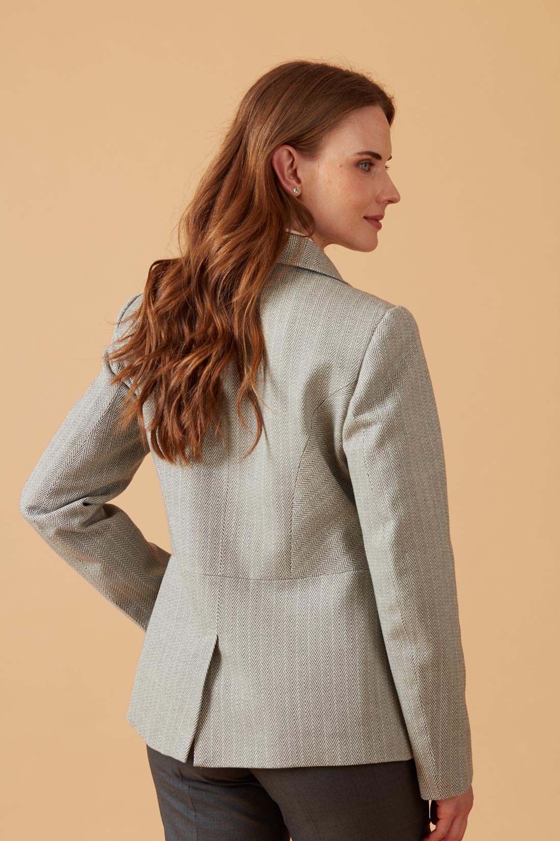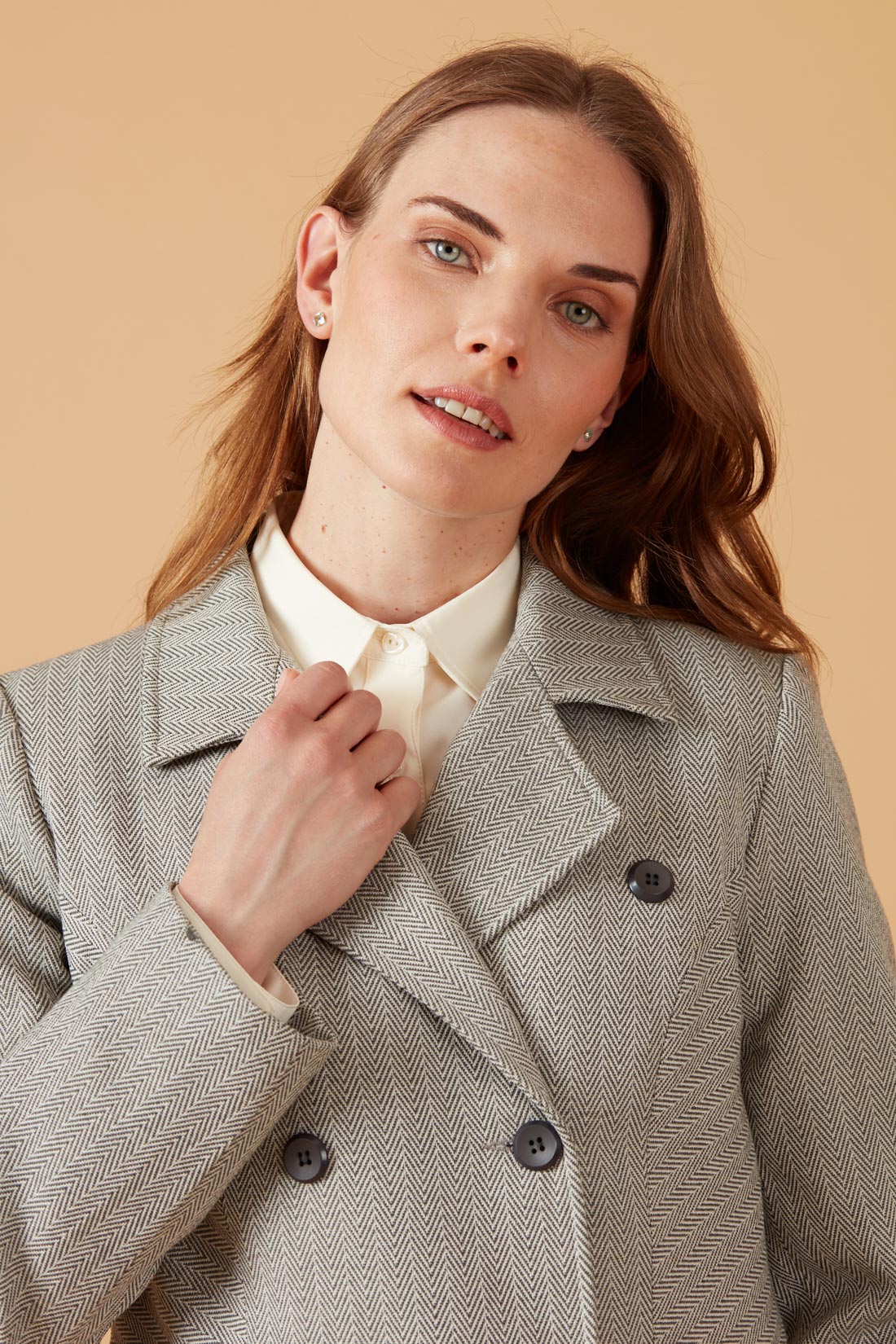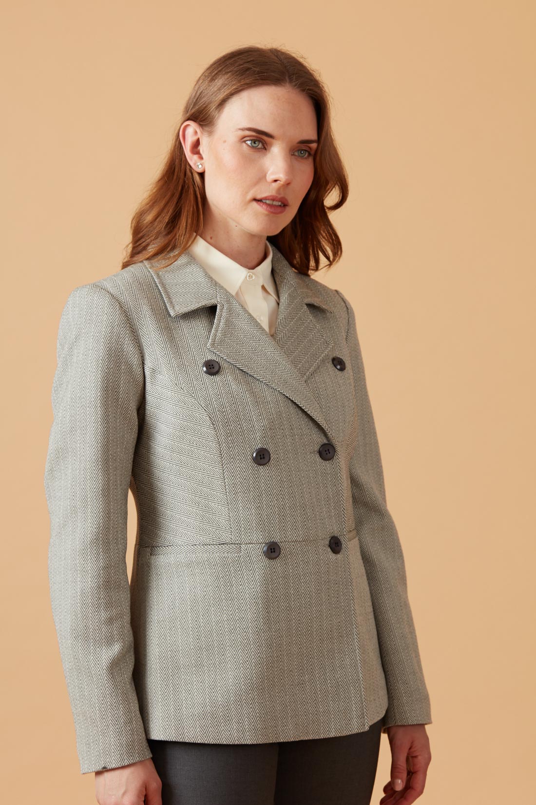 Chaqueta con corte en la cintura, abotonadura doble.