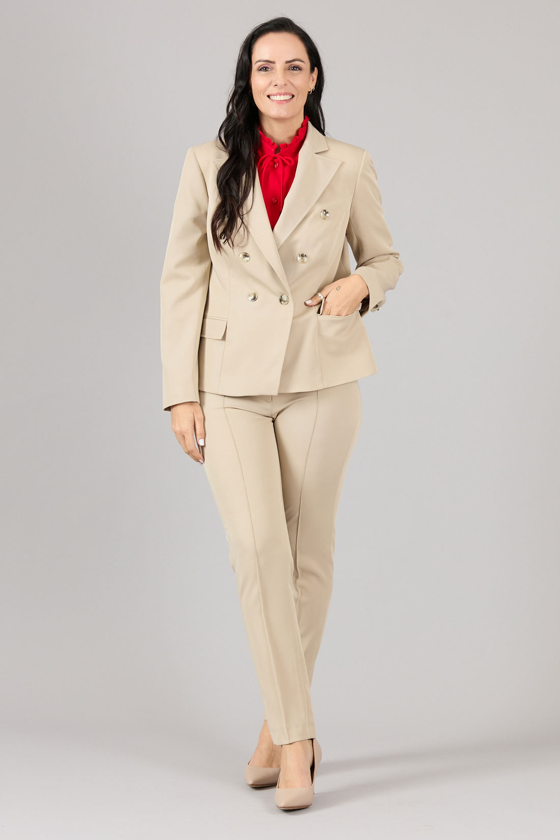 Chaqueta cruzada, bolsillos con tapetas.