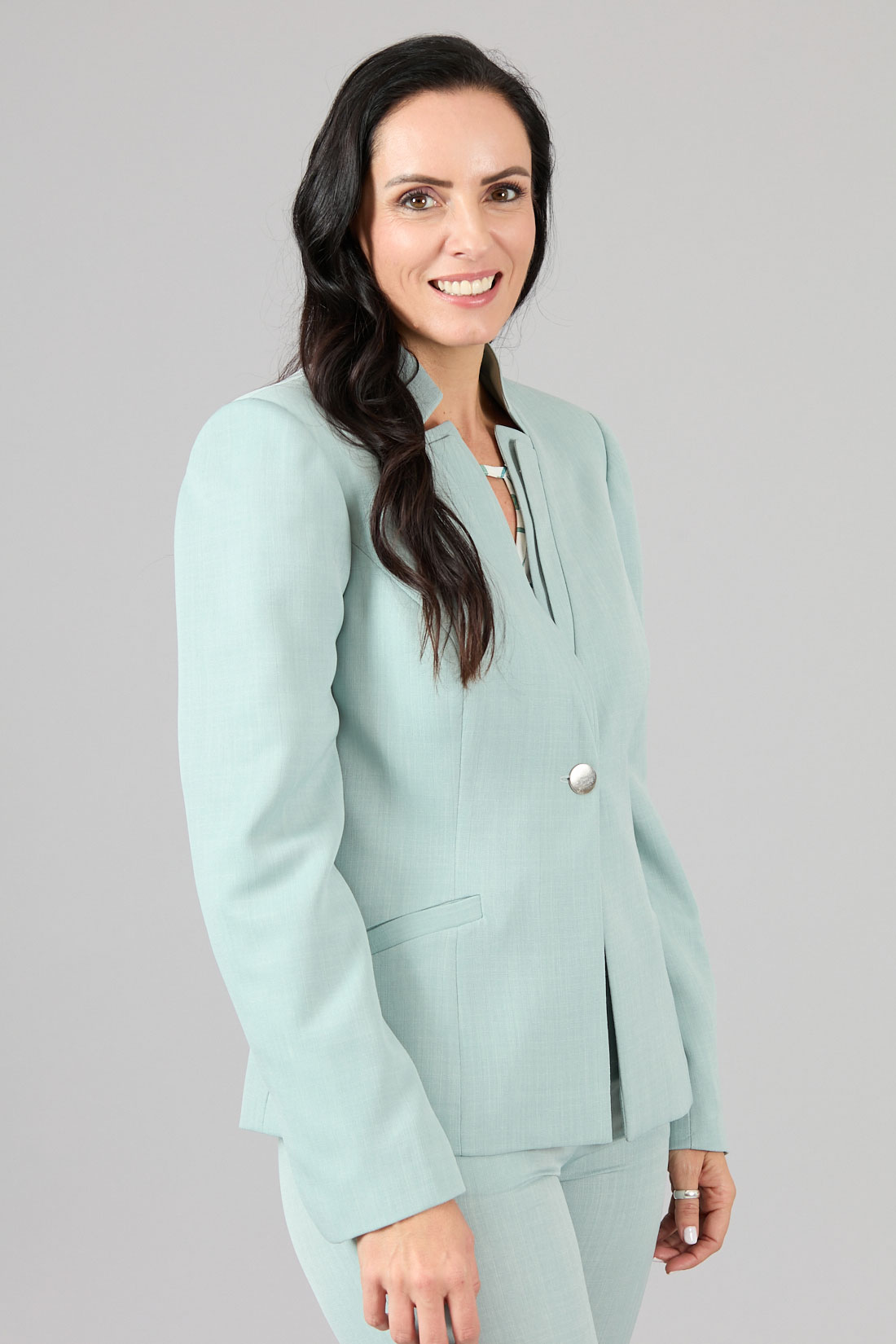 Chaqueta con doble solapa subida.