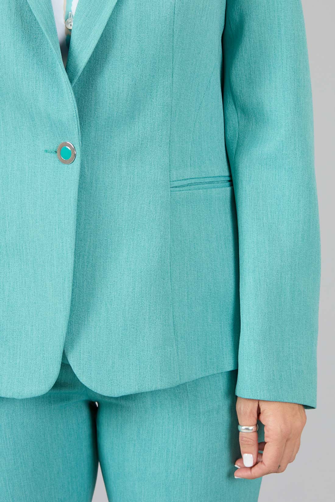 Chaqueta con un botón, solapa pequeña y manga larga con botones decorativos.