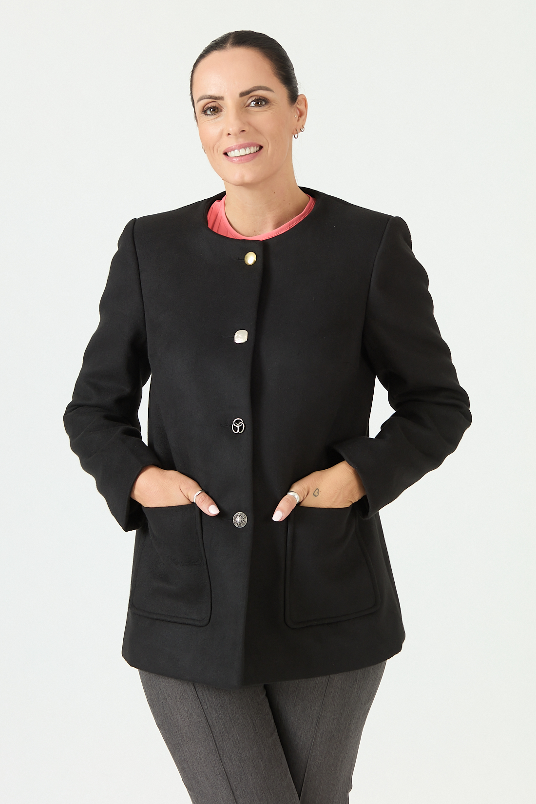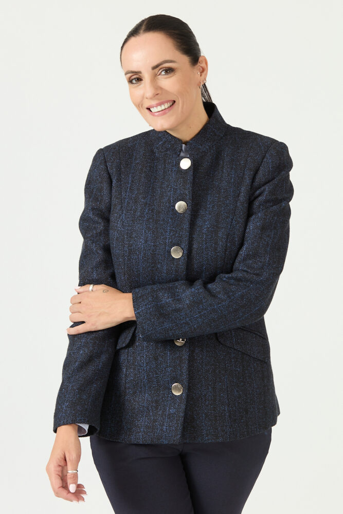 Chaquetón corte Chanel con abotonadura de diferentes colores.