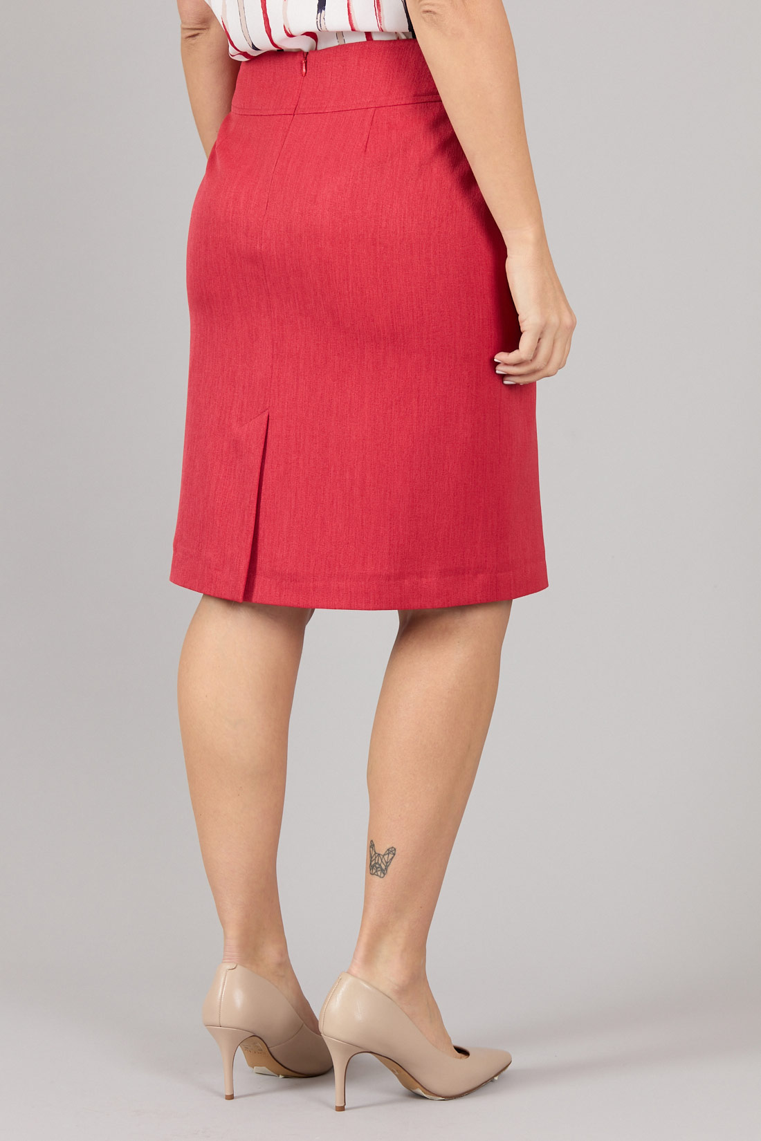 Falda de corte clásico, con cortes cuadrados en delanteros.