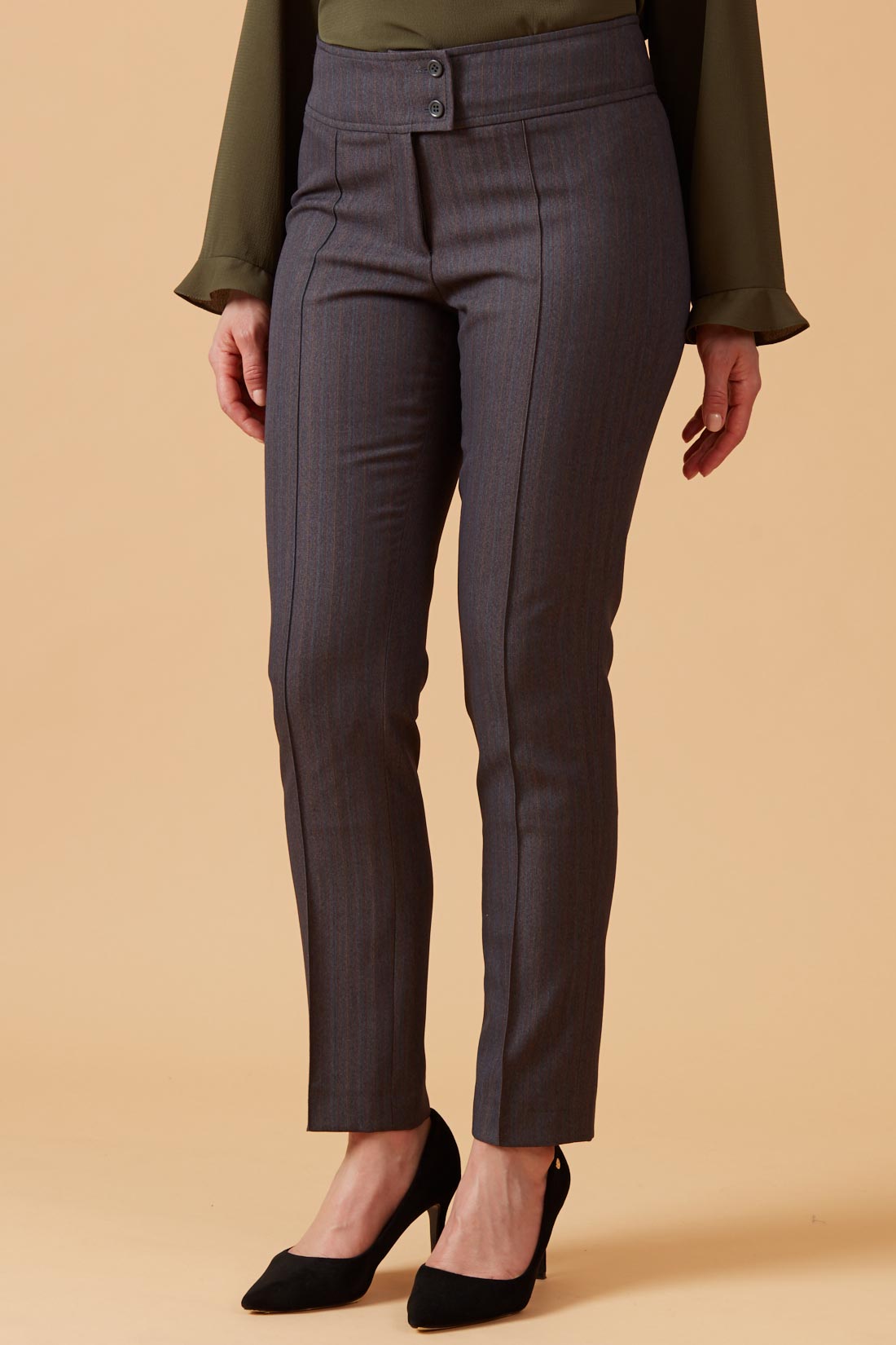 Pantalón ajustado, imprentado, pretina pasada.