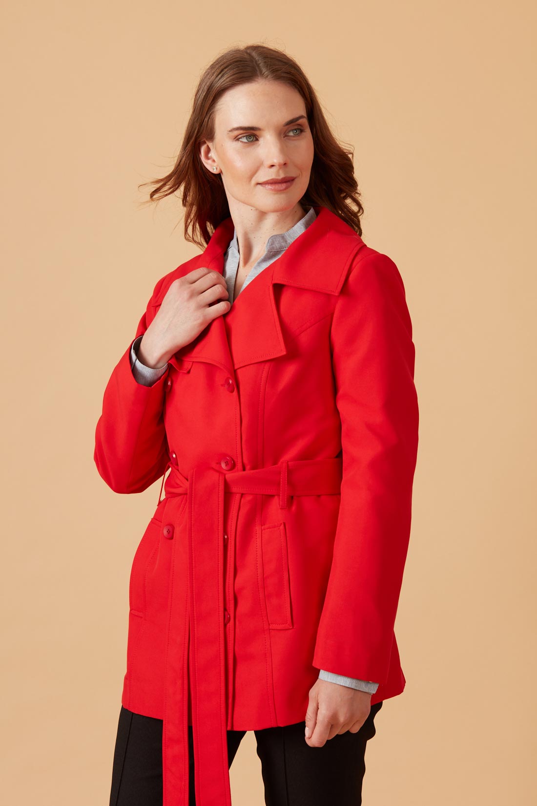 Chaquetón tipo trench impermeable, cruzado.