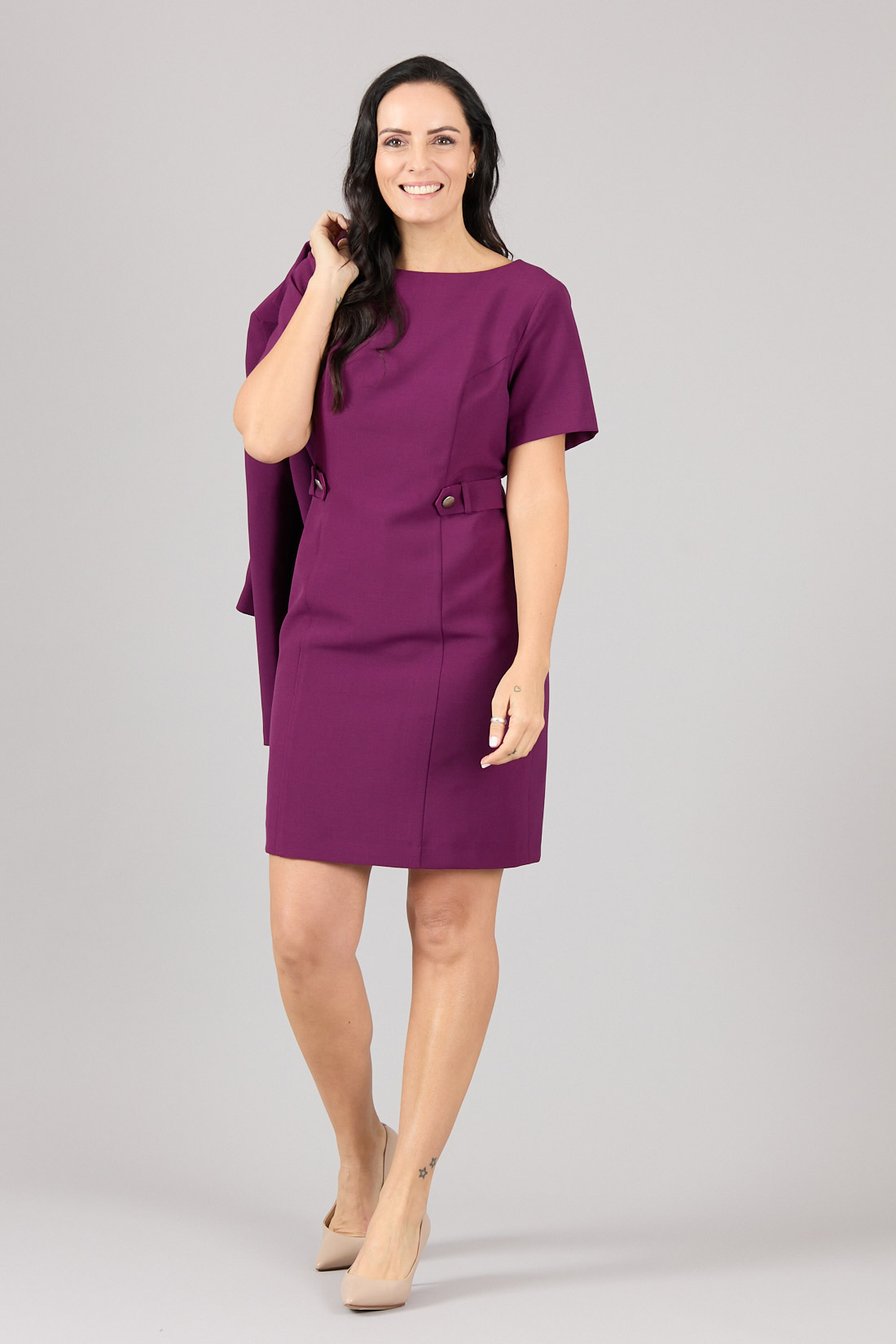 Con detalle de traba y botón en cintura.